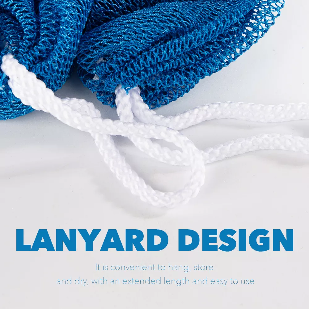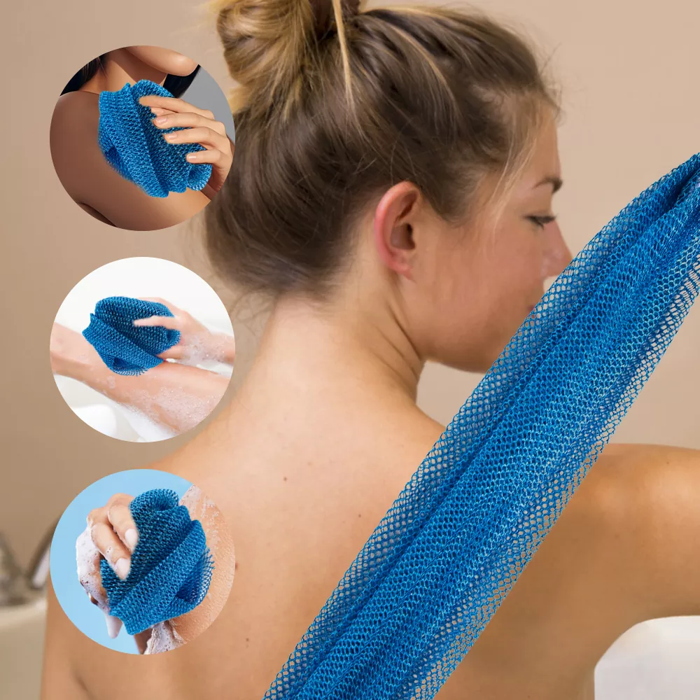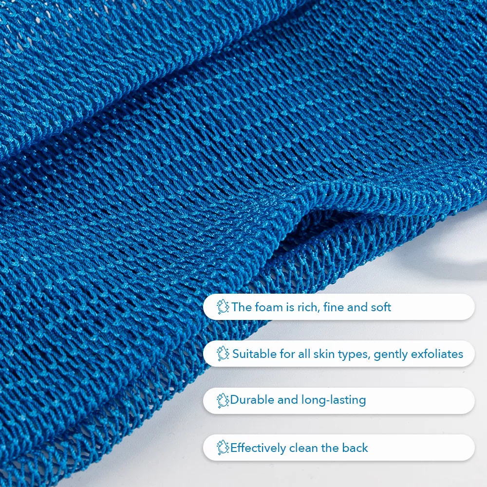 Премиум, ультра жұмсақ нейлон желісімен жасалған, бұл ваннаның белбеуі жақсы, бірақ берік торды мақтан тұрады, олар тез және қайтып келе жатқан теріні жұмсақ кетіреді. Қауіпсіз ілмекпен 45 см реттелетін броштағы барлық өлшемдермен сәйкес келеді, дымқыл болған кезде де қатты ұстаңыз. Оның 12 см-x 8 с 8 см губка басы арқа, иықтар мен аяқтарға оңай жетеді.