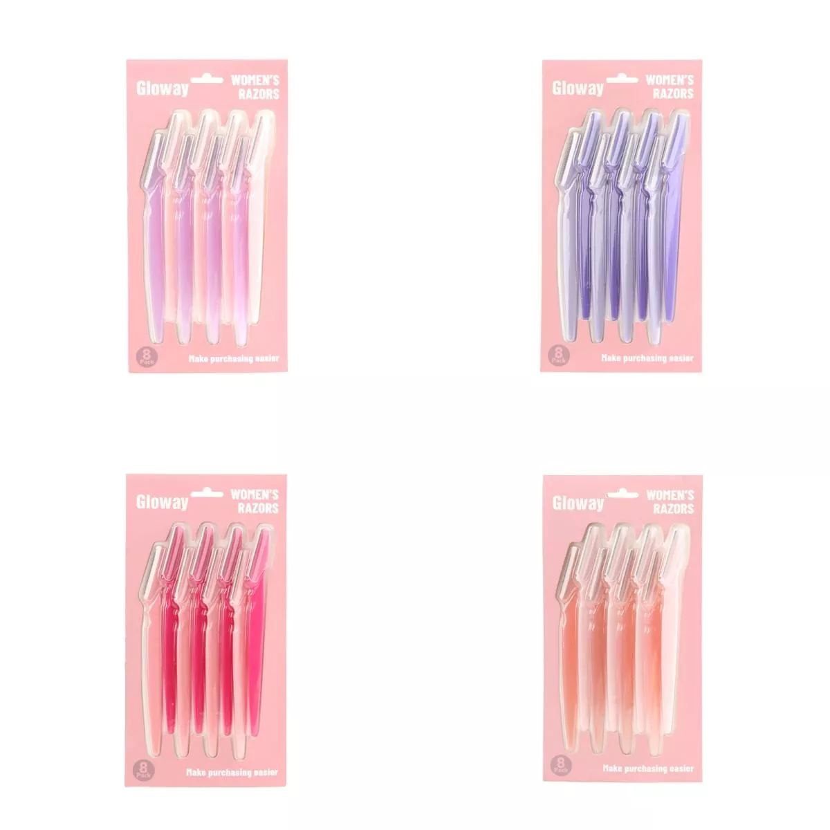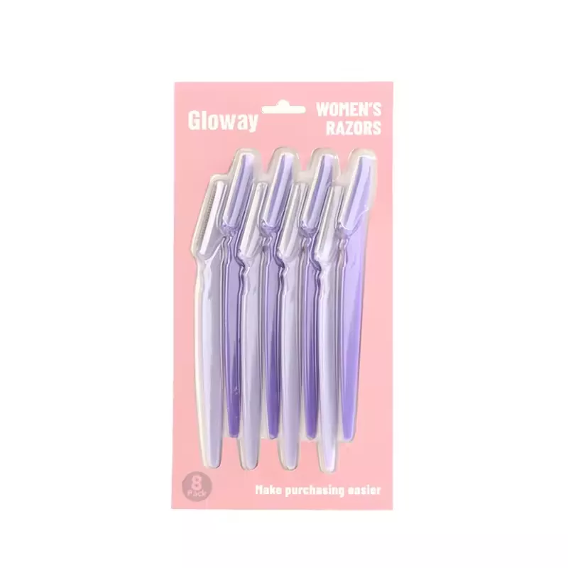 GLOWAY Әйелдерге арналған қас ұстараларымен үй жағдайында дәл, ауыртпалықсыз қас күтіміне қол жеткізіңіз. Жұқа, теріге қолайлы тот баспайтын болаттан жасалған пышақтармен жасалған, ол қастарды ақырын пішіндейді және беттегі жұқа түктерді тітіркендірмей жояды, сезімтал теріге өте ыңғайлы. Жіңішке, эргономикалық пластикалық тұтқа оңай басқару үшін ыңғайлы, сырғымайтын ұстағышты ұсынады. Жұмсақ пастелді түсті жиынтықтарда (8-пакетте) қол жетімді, ол саяхатқа және күнделікті жанасуға өте ыңғайлы портативті қаптамада келеді. Кез келген уақытта, кез келген жерде оңай, салондық сапалы нәтижелер алу үшін қажет сұлулық.
