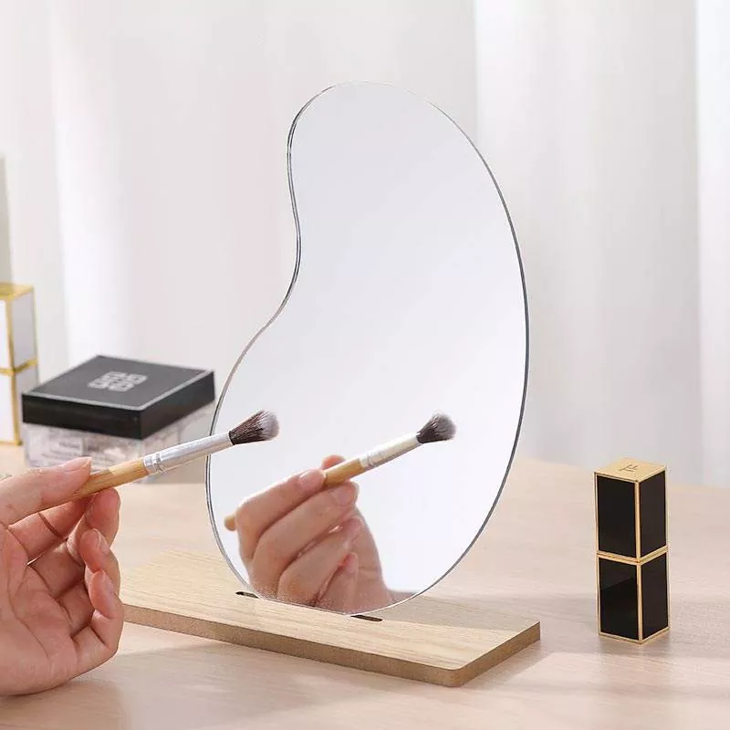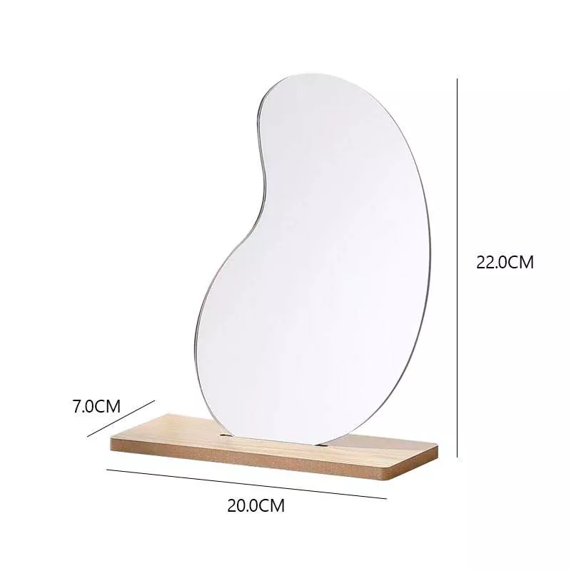 Бұл тұрақты емес толқынды үстел айнасы заманауи үй декорымен тамаша үйлесетін минималистік, көркем силуэтпен ерекшеленеді. Ажыратымдылығы жоғары мөлдір әйнекпен және тегіс ағаш негізден жасалған ол макияжды қолдану, тері күтімі тәртібі және күнделікті күтім үшін тамаша бұрмаланбайтын шағылыстырады.