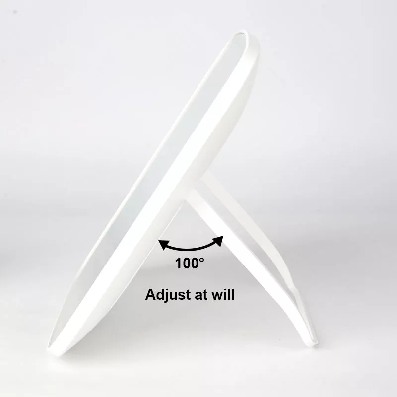 Бұл үстел үсті жарық диодты макияж айнасы әртүрлі макияж сценарийлеріне сәйкес келетін 3 реттелетін жарық режимін (салқын, табиғи, жылы) ұсынады, дәл қолдану үшін шынайы жарық береді. Оның 100° реттелетін тұғыры икемді көру бұрыштарына мүмкіндік береді, ал жұқа, жеңіл дизайн оңай тасымалдануды қамтамасыз етеді.