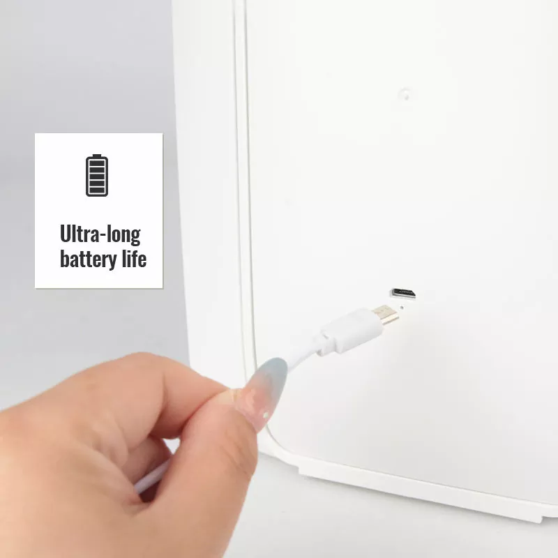 Кірістірілген қайта зарядталатын батареямен жұмыс істейтін бұл айна USB-C жылдам зарядтауды қолдайды және ұзақ пайдалану үшін өте ұзақ батареяның қызмет ету мерзімін ұсынады. Жиі қайта зарядтаудың қажеті жоқ, бұл оны күнделікті үйде де, ұзақ сапарларда да сенімді етеді. Қуатты үнемдейтін жарықдиодты дизайн сонымен қатар қуат тұтынуды азайтады.