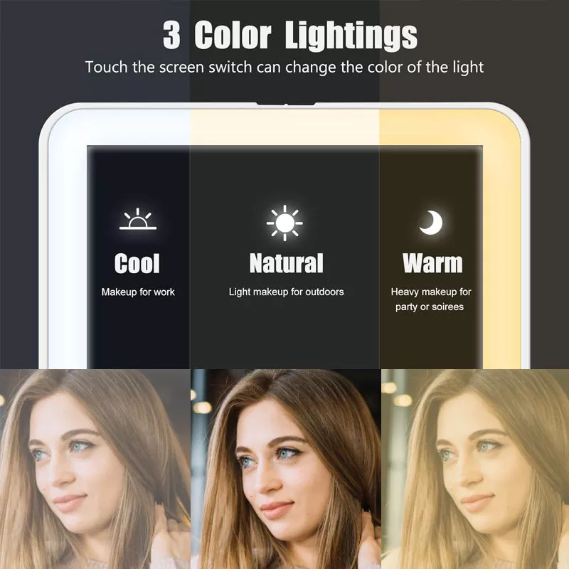 Бұл үстел үсті жарық диодты макияж айнасының барлық макияж сценарийлеріне сәйкес келетін үш реттелетін жарық режимі (салқын, табиғи, жылы) бар. Салқын жарық жұмыс макияжына, сыртқы көрініс үшін табиғи жарыққа және кешкі іс-шараларға арналған жылы жарыққа өте ыңғайлы. Жұмсақ, жыпылықтамайтын жарықдиодты сақина шынайы түстерді береді, тіпті күңгірт орталарда да макияждың дәл қолданылуын қамтамасыз етеді.