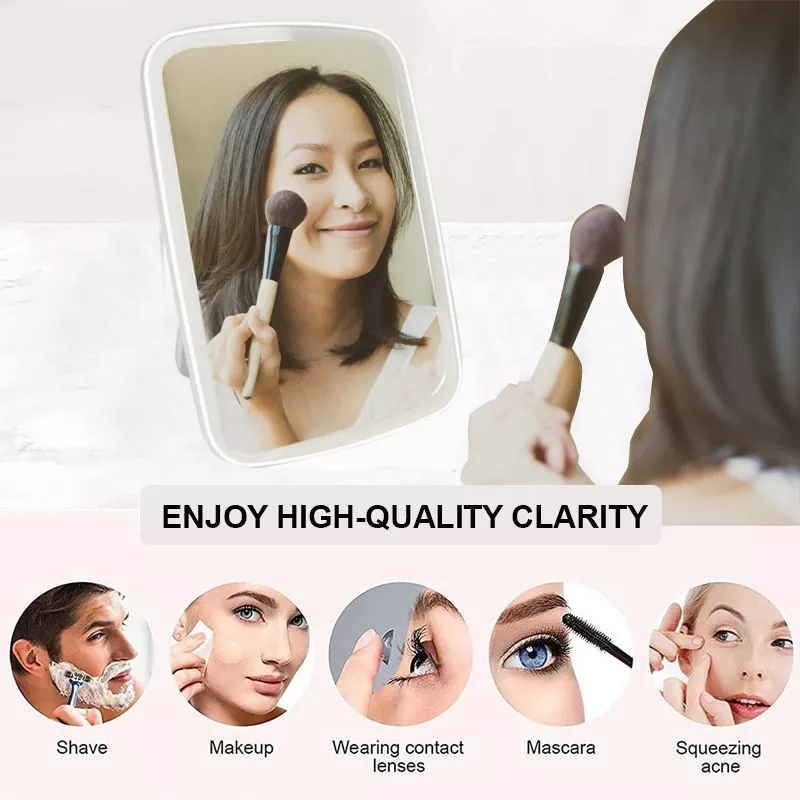 Сезімтал сенсорлық басқару бір рет түрту арқылы жарықтылықты реттеуге мүмкіндік береді, ал анық, бұрмаланбайтын айна анық шағылыстырады. Үйде қолдануға немесе саяхаттауға өте ыңғайлы, ол функционалдылықты минималистік эстетикамен үйлестіреді, бұл оны мінсіз макияж үшін маңызды сұлулық құралына айналдырады.